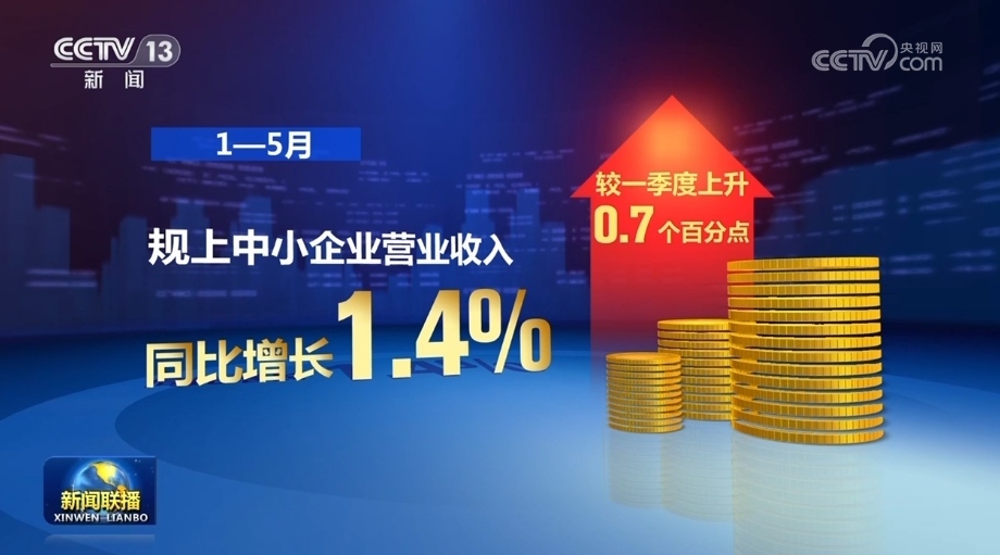 1—5月,規(guī)上中小企業(yè)營(yíng)業(yè)收入同比增長(zhǎng)1.4%,較一季度上升0.7個(gè)百分點(diǎn)。1—5月,“小巨人”、專精特新企業(yè)營(yíng)收利潤(rùn)率分別為9.9%、7.1%,比規(guī)上工業(yè)企業(yè)分別高4.7個(gè)、1.9個(gè)百分點(diǎn)。