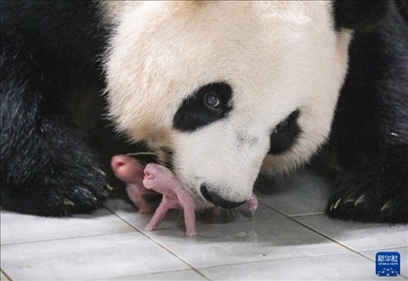 據韓國京畿道龍仁市愛寶樂園介紹,旅韓大熊貓“愛寶(華妮)”于7月7日清晨順利產下一對雌性雙胞胎幼崽。這是旅韓大熊貓“愛寶(華妮)”和“樂寶(園欣)”繼2020年誕下“福寶”后在韓國再次自然交配并誕下幼崽。