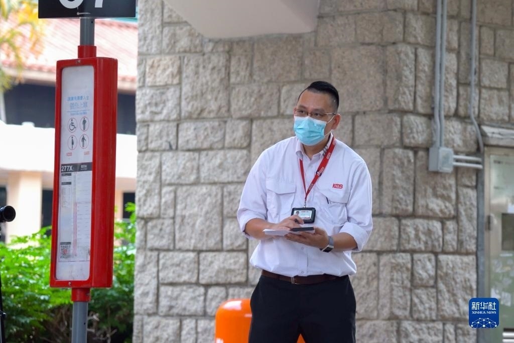 香港九巴總車務(wù)督察謝偉彬在工作中(5月12日攝)。新華社記者 龍鏡伊 攝