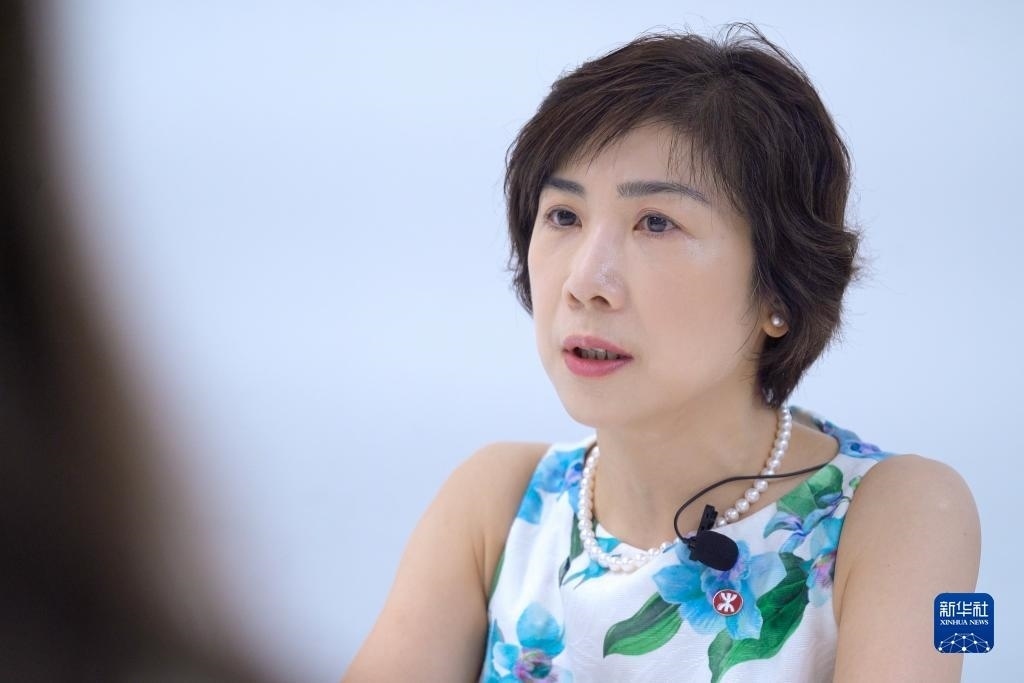 港鐵公司總經(jīng)理(市務(wù)及客戶體驗(yàn))梁靜雯接受采訪(7月12日攝)。新華社記者 龍鏡伊 攝