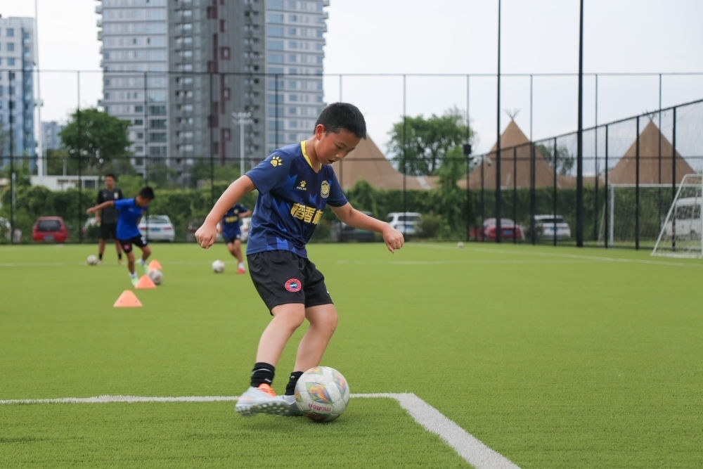 7月21日,在四川天府新區(qū)CDT運動公園內(nèi),小朋友參加暑期少兒足球訓練。新華社記者 楊進 攝