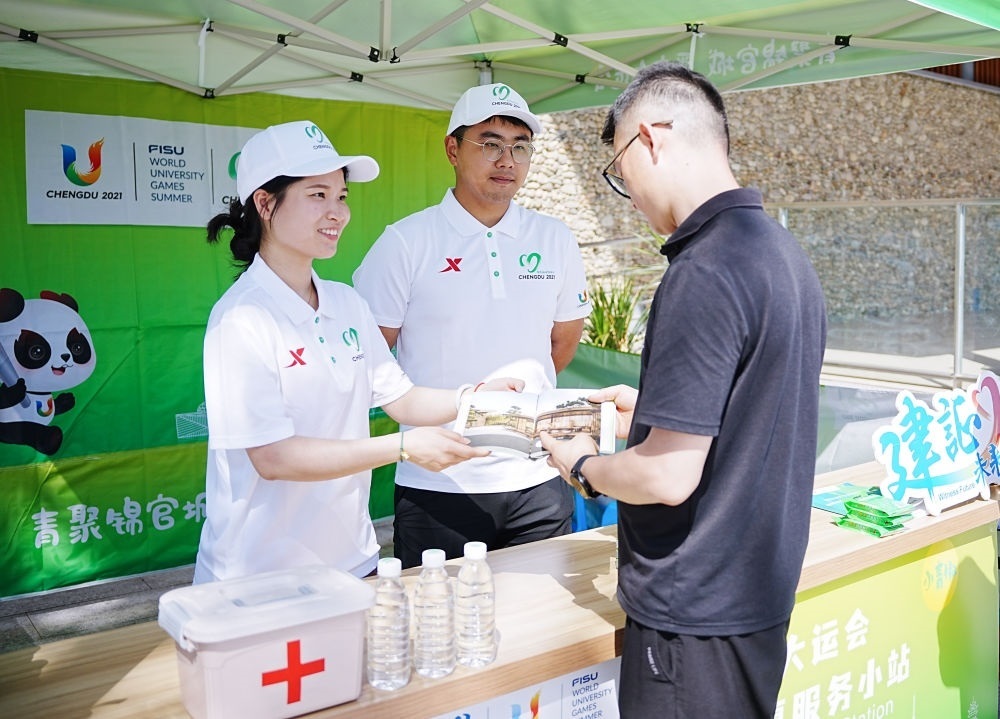 成都的大街小巷,現(xiàn)在隨處可見大運會元素和標識景觀。其中,志愿服務小站是一道獨特的風景線。28歲的志愿者張思宇這幾天正為來往游客提供咨詢等服務。