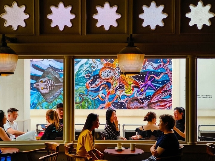 6月21日,人們在成都大源中央公園內(nèi)的咖啡館喝咖啡。新華社記者 沈伯韓 攝