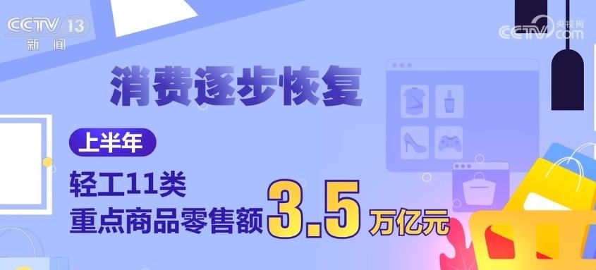 消費(fèi)逐步恢復(fù)。上半年,輕工11類重點(diǎn)商品零售額3.5萬億元,占社會(huì)消費(fèi)品零售總額的15.4%,同比增長6.3%。