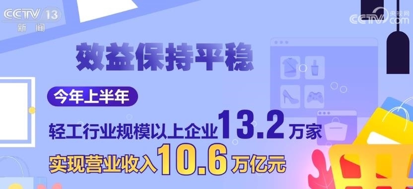 效益保持平穩(wěn)。今年上半年,輕工行業(yè)規(guī)模以上企業(yè)13.2萬家,實(shí)現(xiàn)營業(yè)收入10.6萬億元,同比增長2.1%,高于全國工業(yè)2.5個(gè)百分點(diǎn),實(shí)現(xiàn)利潤5682億元。