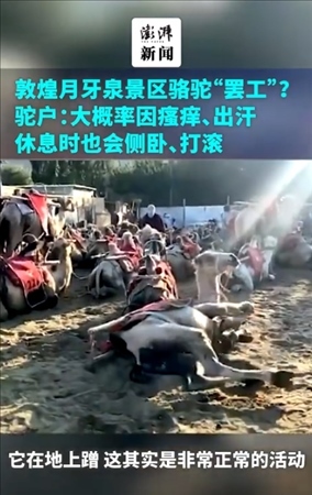 ·敦煌景區(qū)駱駝“罷工”?駝戶(hù):或因瘙癢出汗,休息會(huì)側(cè)臥打滾。