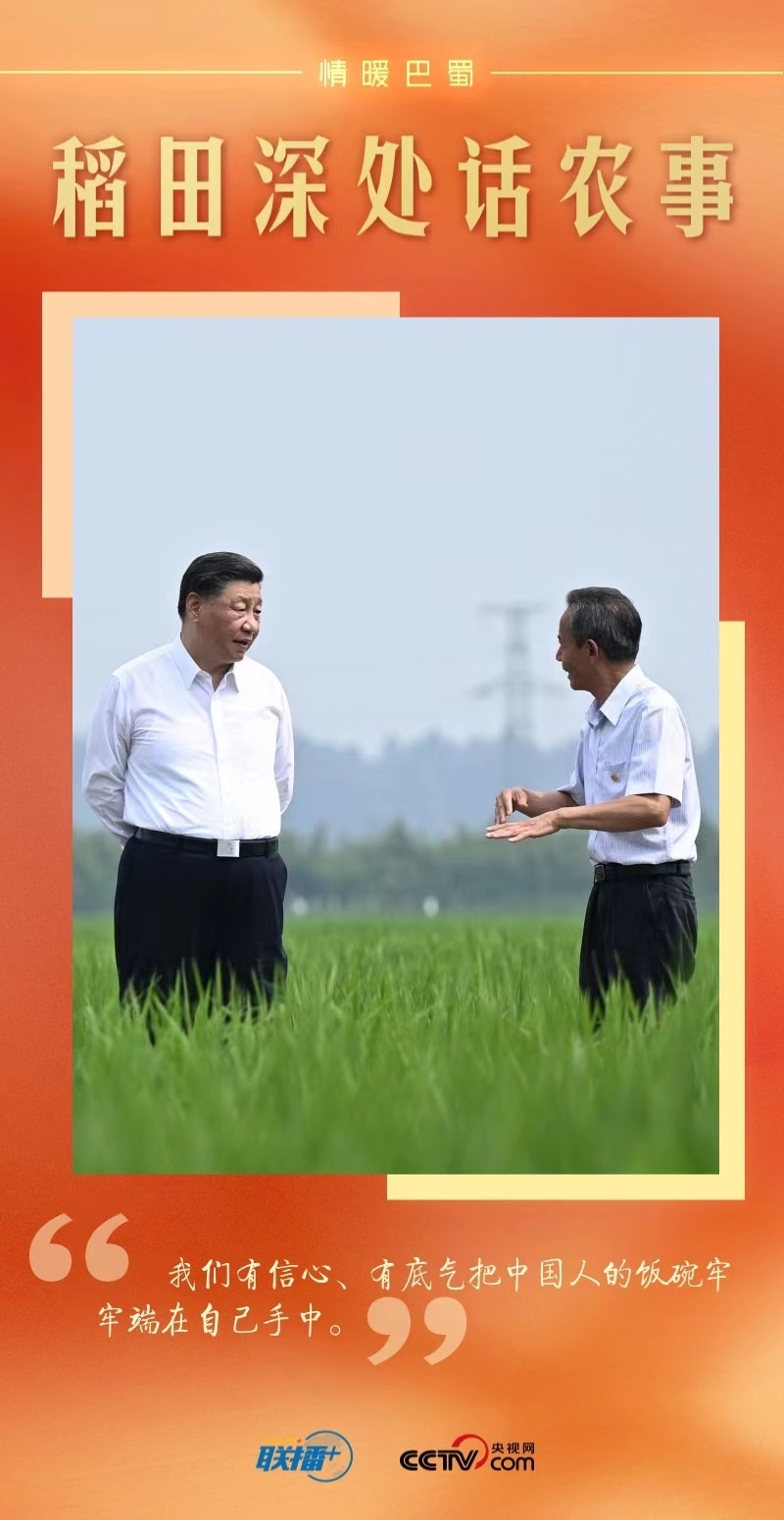 遠(yuǎn)眺廣袤田野,總書記思慮深遠(yuǎn):“民以食為天。推進(jìn)農(nóng)業(yè)現(xiàn)代化,既要靠我們中國的農(nóng)業(yè)專家,也要靠我們中國的農(nóng)民,我們有信心、有底氣實(shí)現(xiàn)糧食安全的目標(biāo)。四川要把農(nóng)業(yè)搞好,把糧食生產(chǎn)抓好?!?/p>