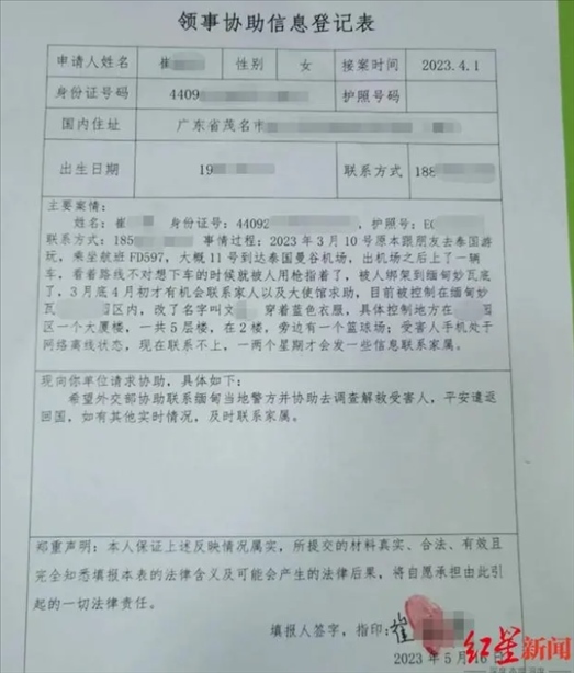 ·被順利解救!家屬稱出游泰國被劫至緬甸的廣東兩男子27日平安回家。