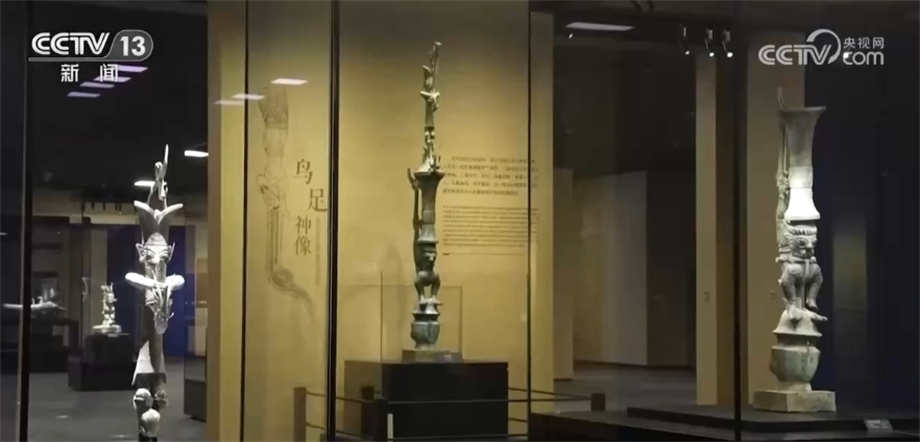 央視網(wǎng)消息:昨天(7月27日),三星堆博物館新館試運(yùn)行。在新館展出的文物中,有一件身高達(dá)2.53米的“倒立鳥足頂尊神像”以其腦洞大開的奇妙設(shè)計(jì)獨(dú)樹一幟,那么這件器物究竟由多少塊“文物組件”組合而成?拼對(duì)“合體”后的它又長什么樣呢?我們跟隨記者的鏡頭一探究竟。