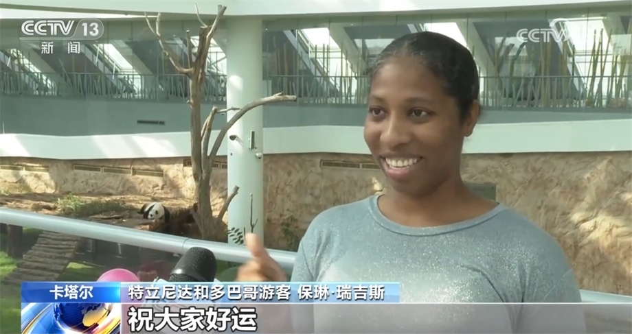 在卡塔爾的大熊貓館,很多前來參觀的游客得知大運會吉祥物“蓉寶”的原型也是一只熊貓,他們紛紛預(yù)祝大運會圓滿成功,祝福運動員們享受比賽,取得好成績。