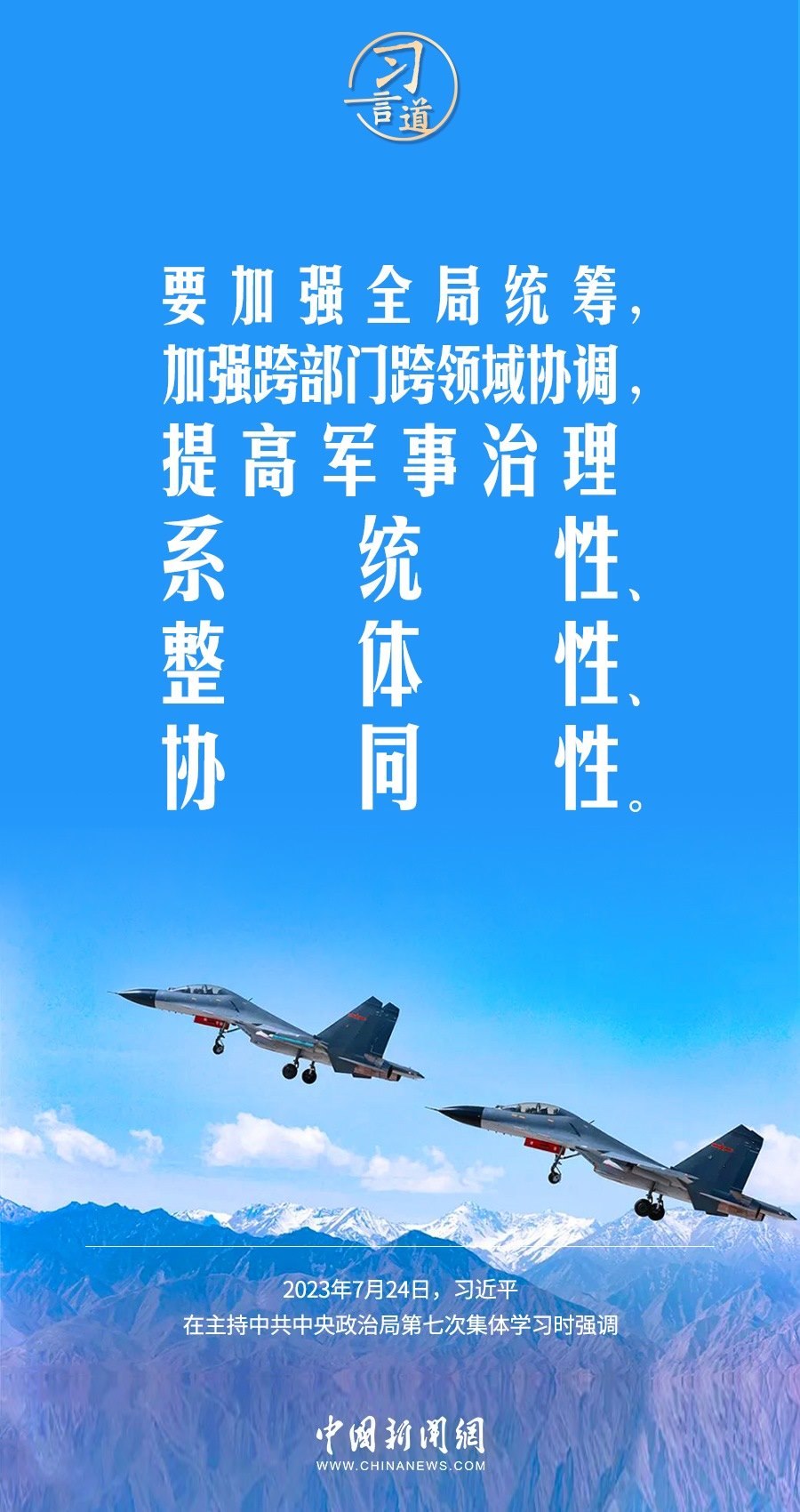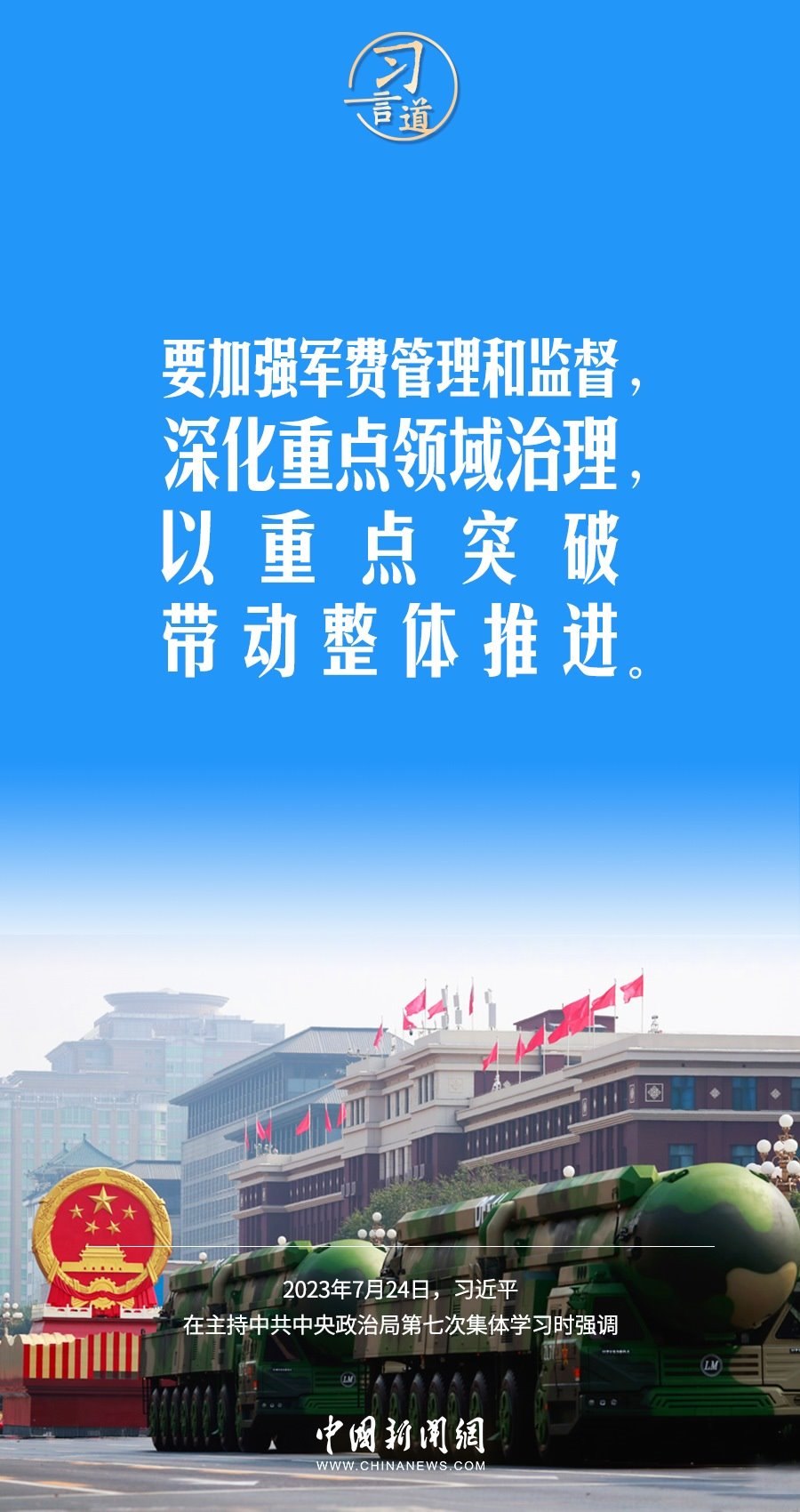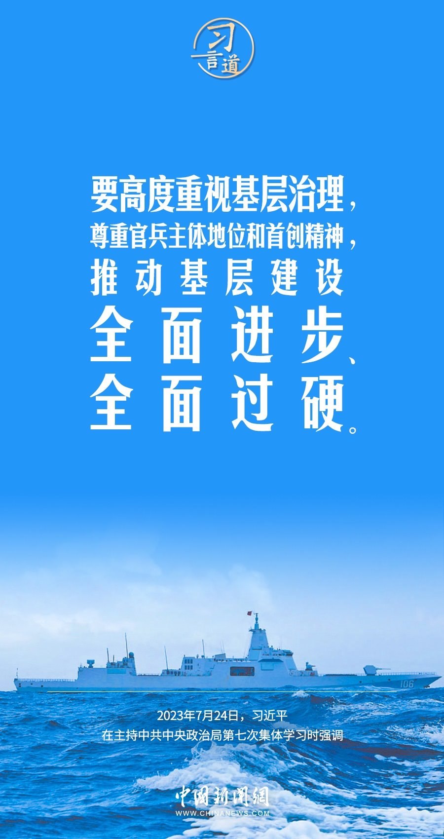 八一建軍節(jié)來(lái)臨之際,中共中央政治局7月24日下午就全面加強(qiáng)軍事治理進(jìn)行第七次集體學(xué)習(xí)。中共中央總書(shū)記習(xí)近平主持學(xué)習(xí),他強(qiáng)調(diào)——