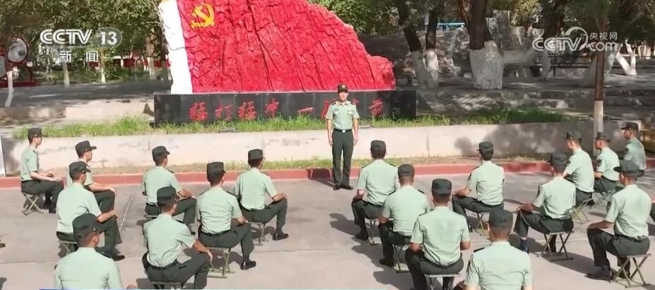 八一建軍節(jié)當(dāng)天,新疆軍區(qū)某紅軍團組織升國旗儀式,官兵們整齊列隊向國旗行軍禮。升旗儀式結(jié)束后,部隊在營區(qū)內(nèi)“黨旗山”下為部分官兵頒發(fā)衛(wèi)國戍邊紀(jì)念章,以此表彰他們對維護祖國繁榮作出的貢獻。
