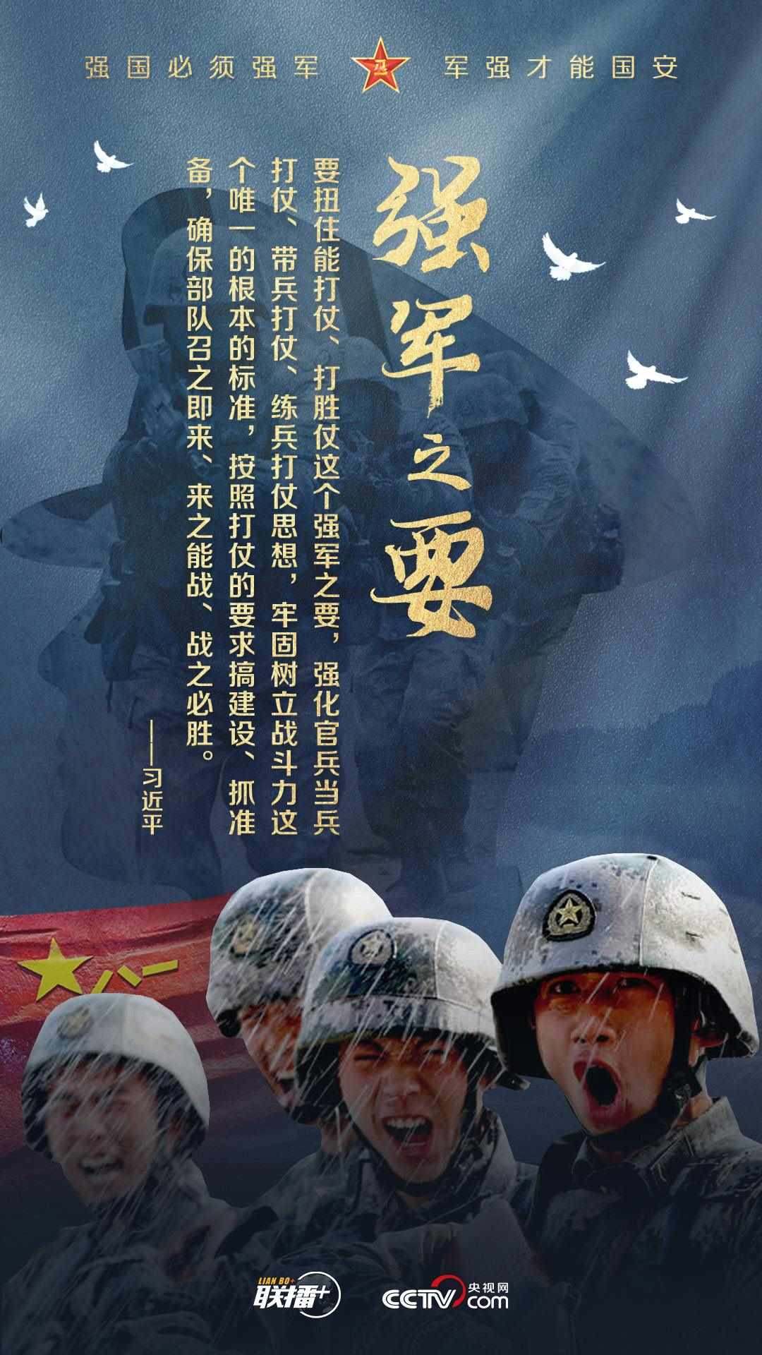 黨的十八大以來,習(xí)近平主席始終高度重視國防和軍隊(duì)建設(shè),為全軍擘畫強(qiáng)軍興軍藍(lán)圖、指引奮進(jìn)方向。值此中國人民解放軍建軍96周年之際,央視網(wǎng)《聯(lián)播+》欄目制作強(qiáng)軍海報,與您一起學(xué)習(xí)習(xí)主席的強(qiáng)軍思想。