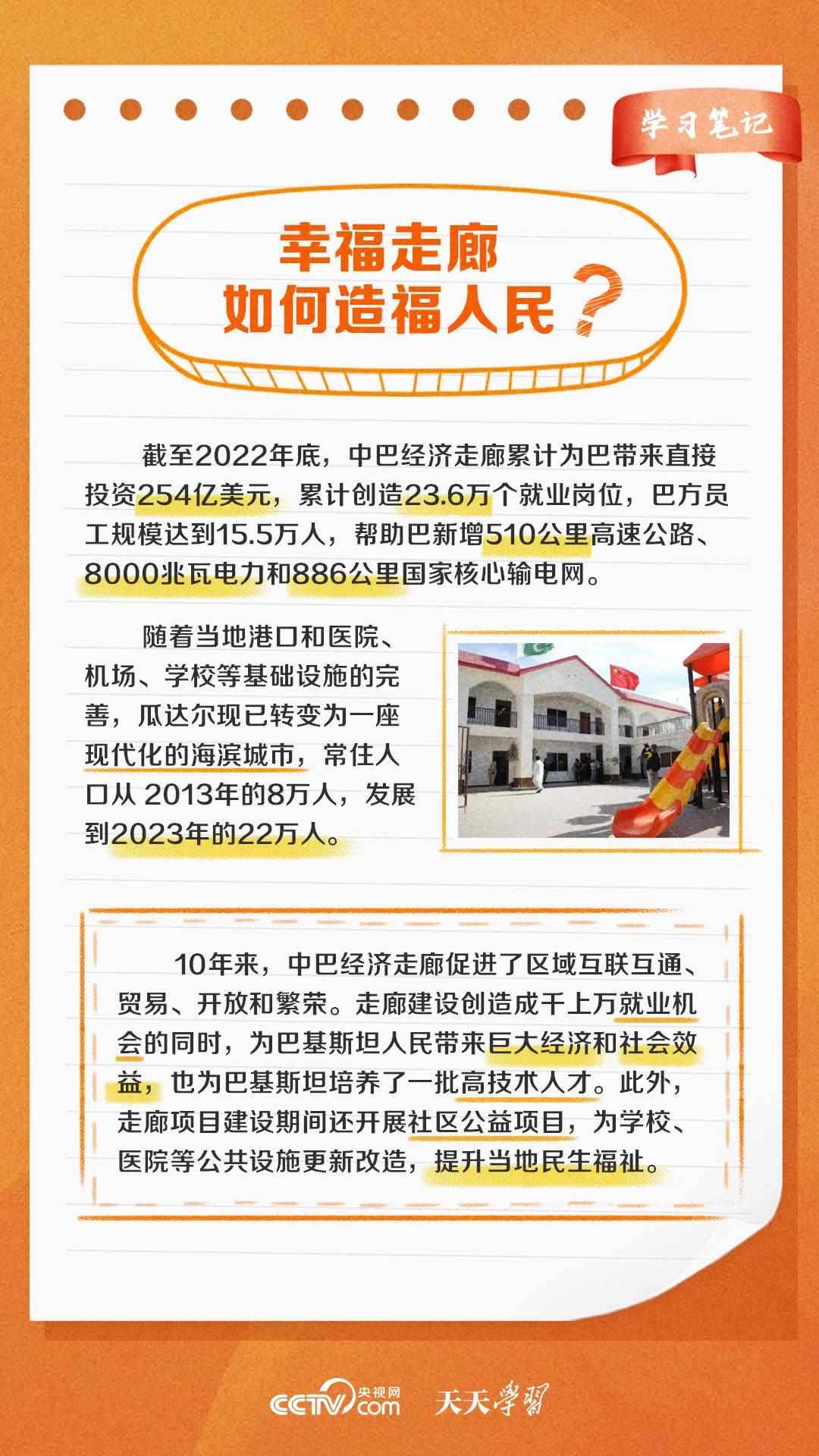 今年是習(xí)近平主席提出共建“一帶一路”倡議十周年,也是中巴經(jīng)濟(jì)走廊啟動(dòng)十周年。經(jīng)過十年的發(fā)展,中巴經(jīng)濟(jì)走廊已成為中巴友誼“新標(biāo)桿”。央視網(wǎng)《天天學(xué)習(xí)·學(xué)習(xí)筆記》特梳理中巴經(jīng)濟(jì)走廊相關(guān)知識(shí)點(diǎn),與您一起學(xué)習(xí)。