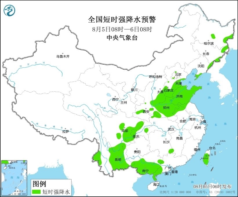 央視網(wǎng)消息:中央氣象臺8月5日06時繼續(xù)發(fā)布強(qiáng)對流天氣黃色預(yù)警,預(yù)計8月5日08時至6日08時,遼寧南部、山西東南部、河北南部、山東中北部和南部、河南中北部、安徽北部、江蘇北部、浙江東部等地的部分地區(qū)將有8-10級雷暴大風(fēng)或冰雹天氣,局地風(fēng)力可達(dá)11級;黑龍江東部、吉林東部、遼寧南部、陜西中南部、山西中南部、河北中南部、北京西南部、天津中南部、山東、河南、安徽北部、江蘇北部、湖北西北部、湖南東南部、四川中東部和南部、重慶西部、云南中東部和西南部、廣西中南部、廣東西南部、臺灣島等地的部分地區(qū)將有短時強(qiáng)降水天氣,小時雨量30-60毫米,局地可達(dá)70毫米以上。