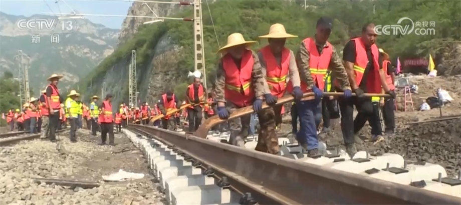 國鐵北京局運輸部副部長 劉海兵:豐沙線是重要的進京通道,此次搶險一共投入5000余人、400多臺機具,搶修斷點39處,為下一步搶險物資(運輸)打通了通道。