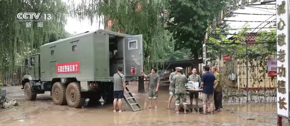 石家莊警備區(qū)動用野戰(zhàn)炊事車等特種裝備,前往涿州市光榮院和涿州市中心敬老院解決150多名老人的飲食問題。同時,他們還將常用藥品等生活物資送到老人手中。