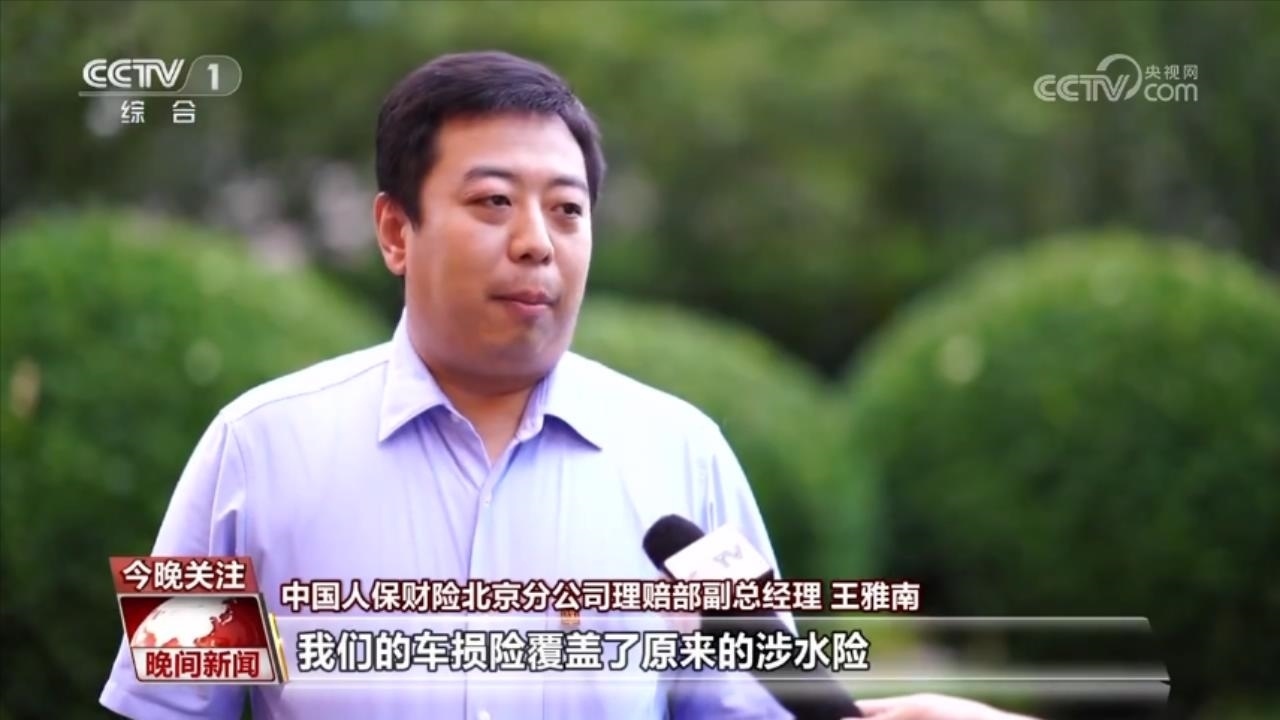 中國人保財險北京分公司理賠部副總經理 王雅南:費改之后,我們的車損險覆蓋了原來的涉水險,所以此次洪水受災的車輛只要購買了車損險,保險公司均可以進行賠付。