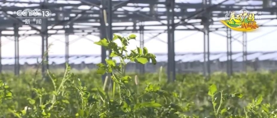 隨著防沙治沙技術(shù)的不斷迭代進(jìn)步,億利資源集團(tuán)引進(jìn)了光伏治沙的理念。現(xiàn)在,已經(jīng)升級到最新的第三代技術(shù)。離地8米的光伏板下面,種了馬鈴薯、西紅柿等作物,其中,馬鈴薯畝產(chǎn)能達(dá)到4000公斤,而且大型機(jī)械可以在里面作業(yè)。在利用光伏治沙的過程中,田旺和他的團(tuán)隊(duì)還開創(chuàng)了畜禽草耦合治沙技術(shù),利用光伏板下的空間發(fā)展生態(tài)養(yǎng)殖。