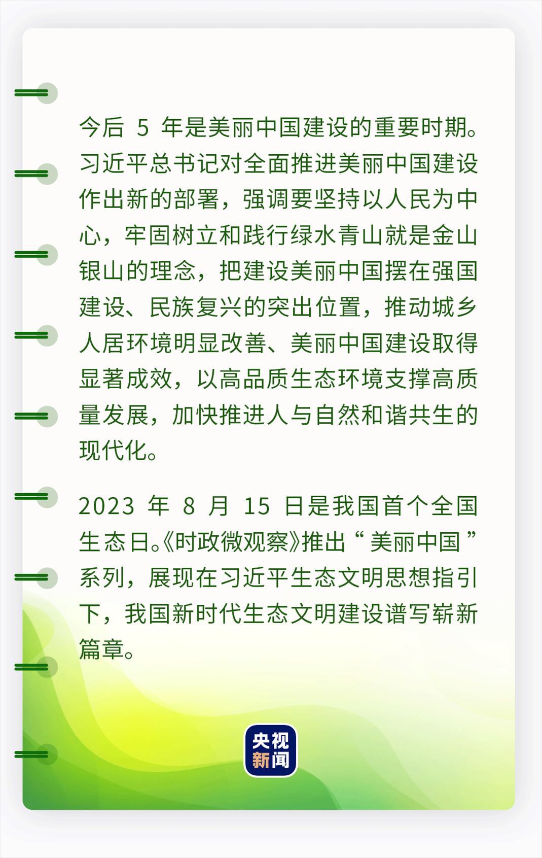 堅定不移走綠色發(fā)展道路,著力構(gòu)建綠色低碳循環(huán)經(jīng)濟體系,不斷拓寬綠水青山轉(zhuǎn)化為金山銀山的路徑,我國經(jīng)濟持續(xù)回升向好定能積蓄澎湃的綠色動能。
