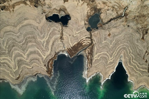 日漸干涸的死海。自1960年以來,死海已經(jīng)失去了三分之一的表面積,藍色的海水每年后退約一米。