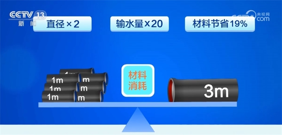 ?????? 大口徑球墨鑄鐵管不僅有更強(qiáng)的抗地基沉降能力,而且還能大幅降低各種材料消耗,以常用規(guī)格的DN1000和DN3000管作為對(duì)比:DN3000管的直徑增加了2倍,輸水量卻增加了20倍,產(chǎn)品的材料消耗也節(jié)約了19%。