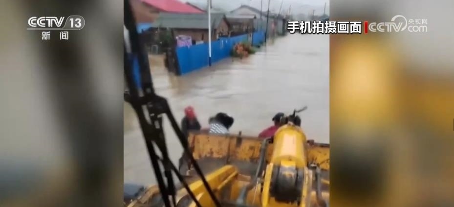 孫慶波將繩子的一頭綁在鏟車上,另一頭綁上水桶,找準水流的方向,讓水桶順流漂到被困村民旁邊。