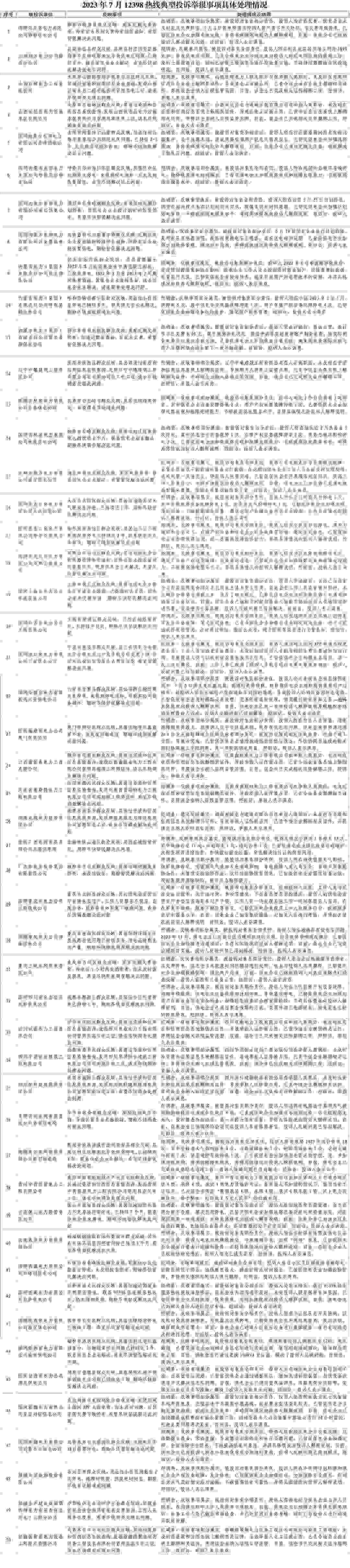 針對(duì)群眾反映的投訴舉報(bào),國(guó)家能源局派出機(jī)構(gòu)嚴(yán)格根據(jù)國(guó)家有關(guān)法規(guī)政策進(jìn)行處理。一是督促供電企業(yè)加大電力設(shè)施建設(shè)、維護(hù)等資源投入,采取有效措施解決停電、低電壓等電能質(zhì)量問(wèn)題,進(jìn)一步提升供電可靠性;二是要求供電企業(yè)加強(qiáng)停電搶修管理,采取加大業(yè)務(wù)培訓(xùn)力度、增加搶修資源投入等手段,促進(jìn)停電搶修能力提升,切實(shí)提高電能服務(wù)質(zhì)量;三是通過(guò)行政處罰、監(jiān)管約談、責(zé)令整改等方式,糾正有關(guān)企業(yè)違法違規(guī)行為,維護(hù)公平公正的市場(chǎng)秩序和群眾合法權(quán)益;四是通過(guò)解釋說(shuō)明、澄清事實(shí),使群眾消除誤解。(2023年7月12398熱線典型投訴舉報(bào)事項(xiàng)具體處理情況見(jiàn)附件2)