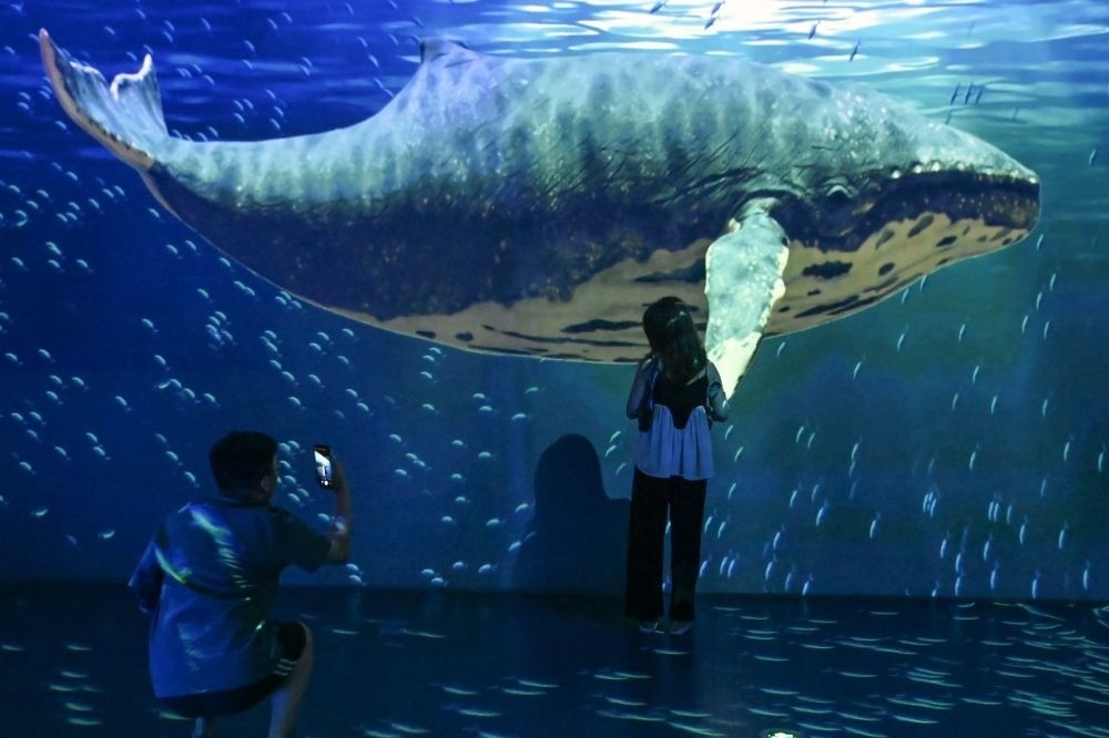 正值大型沉浸式互動(dòng)數(shù)字藝術(shù)作品《鯨奇物語(yǔ)》光影藝術(shù)展首展上映,國(guó)家海洋博物館里人頭攢動(dòng)。