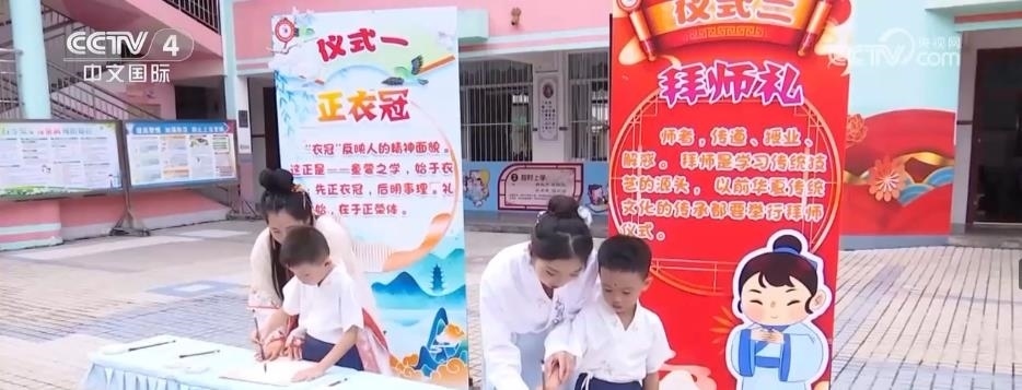 8月28日,廣西南寧市中小學校、幼兒園迎來了秋季學期。在南寧市新陽路小學,300多名一年級新生參加了一場中華傳統(tǒng)入學“開筆禮”。同學們身著傳統(tǒng)服飾,依次進行禮正衣冠、行拜師禮、朱砂點痣、擊鼓明志、開筆啟蒙等傳統(tǒng)儀式。