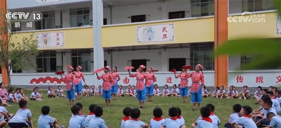 在湖南省永州市蘋洲小學(xué),一場花鼓戲表演正在進行。學(xué)生們化身“小戲骨”,把“唱念做打”基本功表現(xiàn)得淋漓盡致?;ü膽蚴菄曳俏镔|(zhì)文化遺產(chǎn)之一,今年暑假,永州市蘋洲小學(xué)將學(xué)唱花鼓戲作為學(xué)生的暑假作業(yè)之一,學(xué)生們自行組隊進行排練,開學(xué)第一課就成了孩子們展示暑假作業(yè)的表演專場。