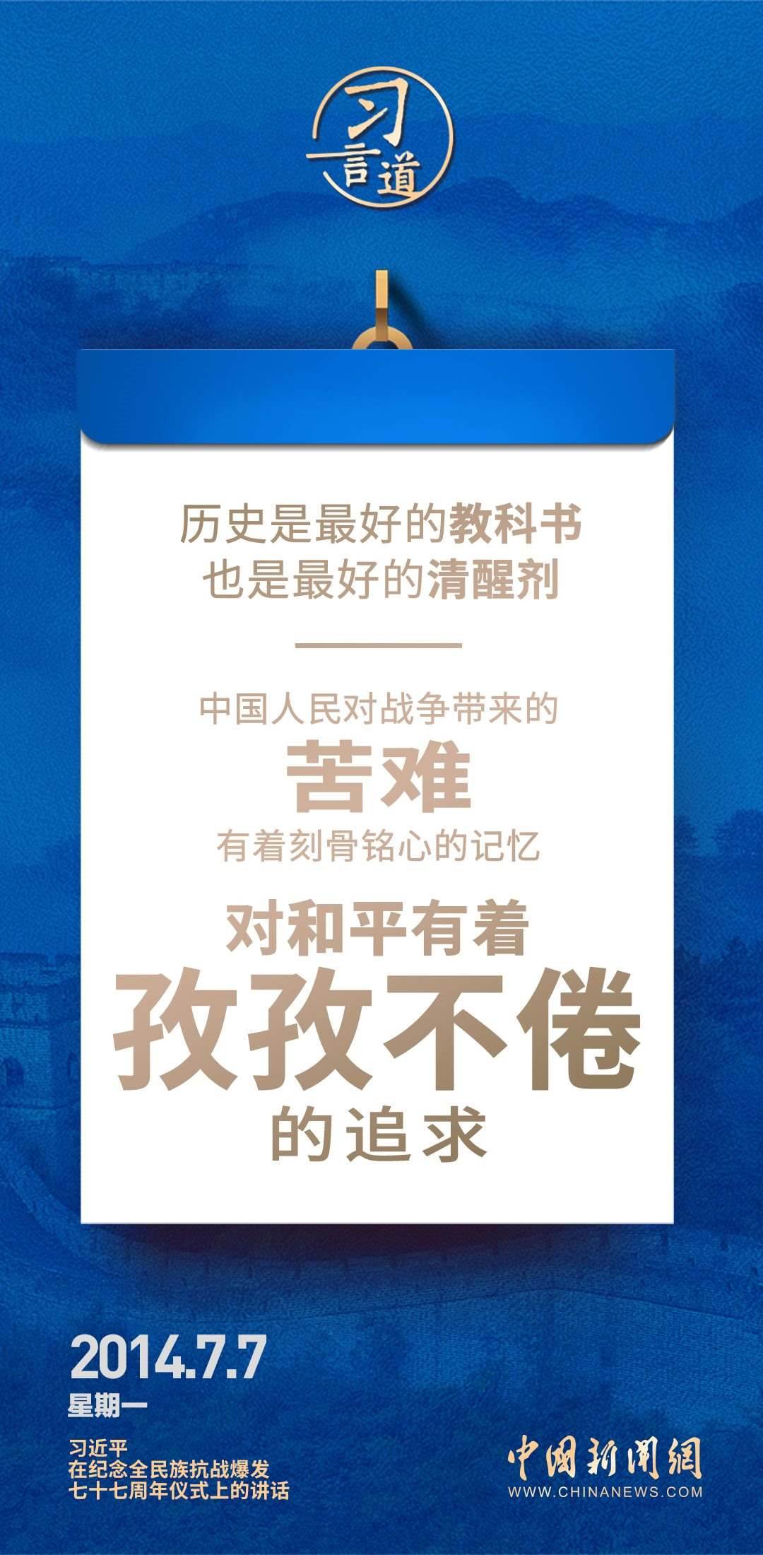 9月3日是中國(guó)人民抗日戰(zhàn)爭(zhēng)勝利紀(jì)念日,也是世界反法西斯戰(zhàn)爭(zhēng)勝利紀(jì)念日。習(xí)近平總書(shū)記關(guān)于抗戰(zhàn)的論述時(shí)刻提醒我們要銘記歷史,珍愛(ài)和平。