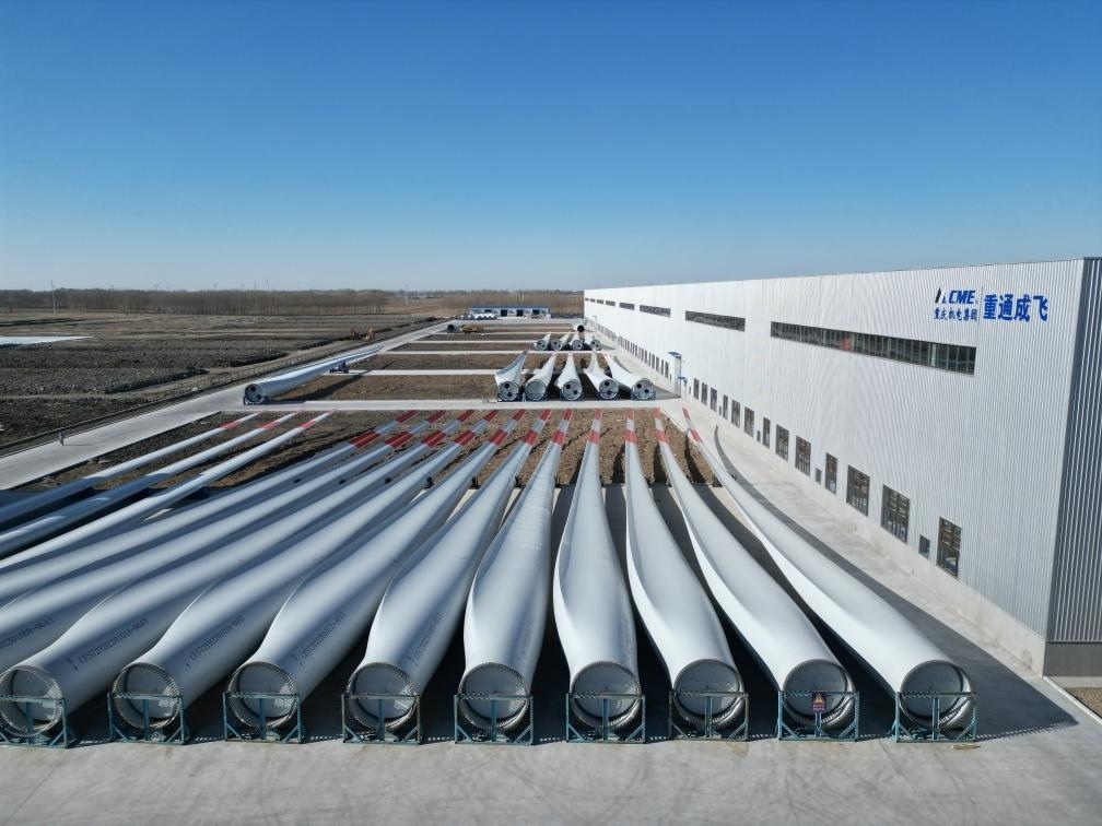 吉林重通成飛新材料股份公司生產(chǎn)的風(fēng)機(jī)葉片。新華社記者姜明明 攝