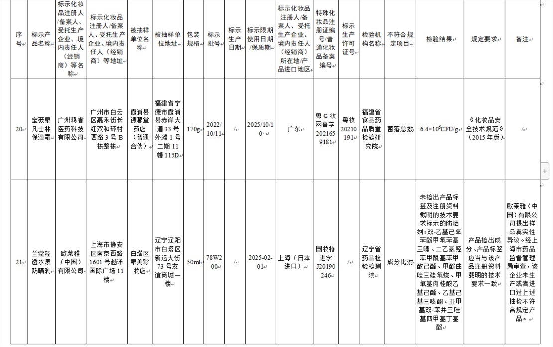 根據《化妝品監(jiān)督管理條例》《化妝品生產經營監(jiān)督管理辦法》《化妝品抽樣檢驗管理辦法》,國家藥監(jiān)局要求上海、浙江、廣東?。ㄊ校┧幤繁O(jiān)督管理部門對上述不符合規(guī)定化妝品涉及的注冊人、備案人、受托生產企業(yè)等依法立案調查,責令相關企業(yè)立即依法采取風險控制措施并開展自查整改。各?。▍^(qū)、市)藥品監(jiān)督管理部門責令相關化妝品經營者立即停止經營上述化妝品,依法調查其進貨查驗記錄等情況,對違法產品進行追根溯源;發(fā)現(xiàn)違法行為的,依法嚴肅查處;涉嫌犯罪的,依法移送公安機關。