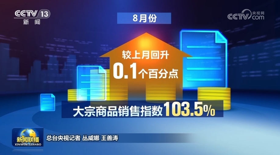 另外, 8月份大宗商品銷售指數(shù)為103.5%,較上月回升0.1個(gè)百分點(diǎn),終端市場及貿(mào)易商的采購意愿有所增強(qiáng),市場需求整體向好。