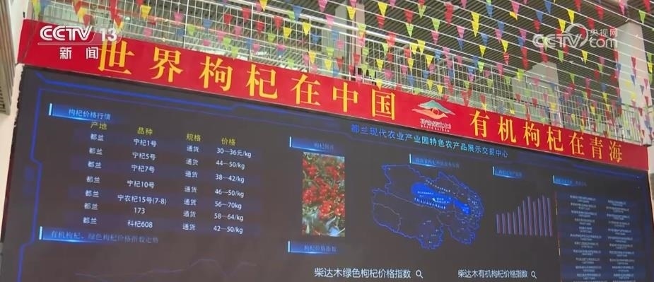 這兩天,在剛剛投入運(yùn)行的都蘭縣國(guó)家級(jí)現(xiàn)代農(nóng)業(yè)產(chǎn)業(yè)園特色農(nóng)產(chǎn)品展示交易中心內(nèi),匯集了不少枸杞種植戶(hù)和外來(lái)采購(gòu)商。眼前,這塊屏幕上顯示的,是國(guó)內(nèi)不同品種枸杞當(dāng)前的市場(chǎng)價(jià)格、價(jià)格指數(shù)走勢(shì)、種植區(qū)域分布、產(chǎn)量等信息。
