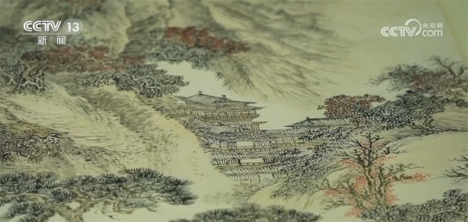 這幅《秋林書屋圖》,是清初四王之一、非常著名的畫家王翚在79歲的時(shí)候創(chuàng)作的,是珍貴的國(guó)家一級(jí)文物。這幅畫呈現(xiàn)的就是文人在山中茅屋當(dāng)中讀書的一個(gè)情景。雖然300多年的時(shí)間過去了,但是展開這幅畫,我們?nèi)匀豢梢钥吹椒浅ur明的色彩,蒼林翠竹與霜葉秋楓交相輝映,給我們帶來非常美的視覺享受。