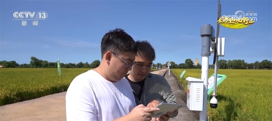 閆家崗農(nóng)場黨委書記 張雅南:咱們現(xiàn)在手里拿的這塊屏,就相當于在我們田間地頭建設(shè)了一個農(nóng)業(yè)的智慧大腦。您看我手邊指的這一個,下面就是視覺傳感器,它是做什么用的?它就是在水稻的不同生育期負責拍攝水稻生長的狀態(tài)。原來人工巡田,現(xiàn)在通過智慧大腦來巡田、來決策,所以更科學、更高效。