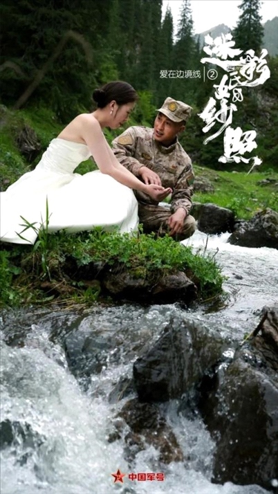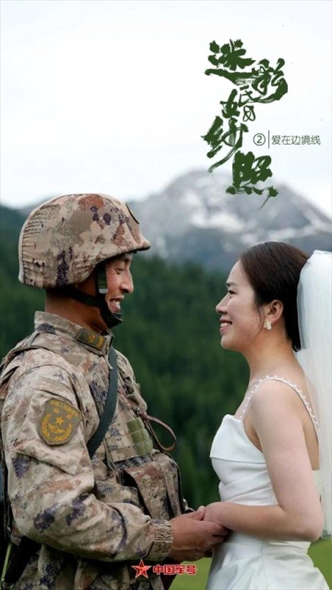 陳健駐守在新疆軍區(qū)紅海溝邊防連,與妻子丁佳結婚8年,聚少離多,一直遺憾沒有拍過婚紗照。妻子丁佳決定給他一個驚喜——帶上婚紗,跨越幾千公里,在他巡邏的路上與他“偶遇”!迷彩婚紗照又有“天花板”了!
