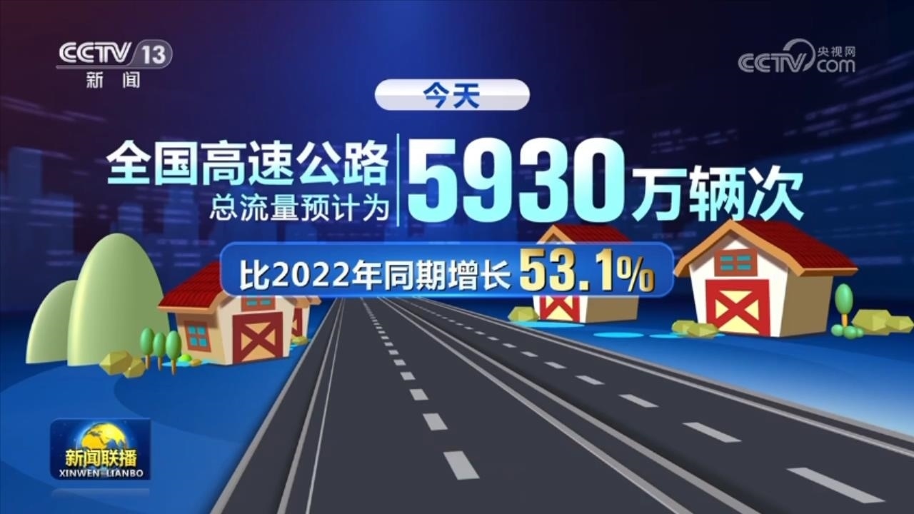 今天,全國高速公路總流量預計為5930萬輛次,比2022年同期增長53.1%。