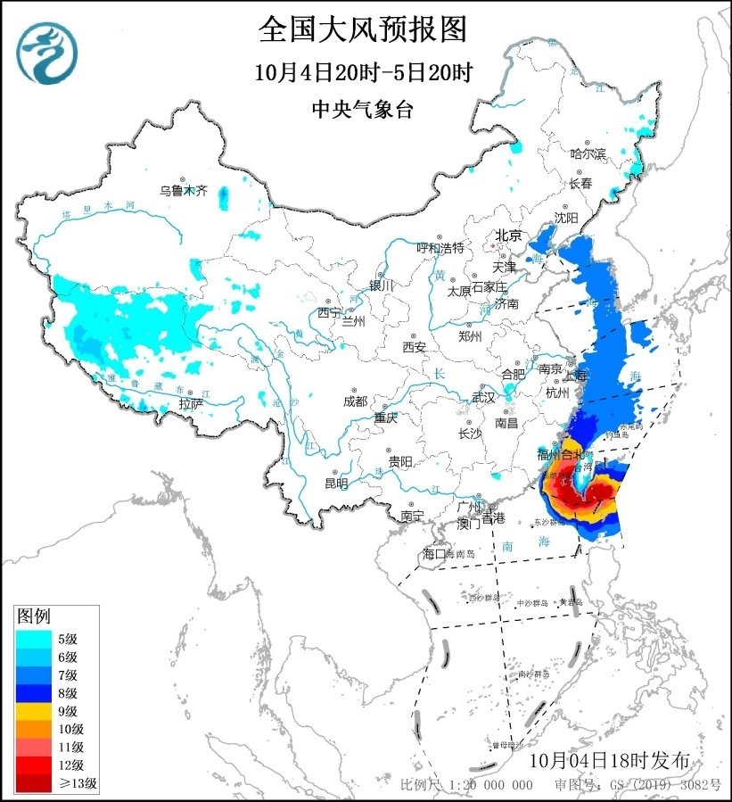 10月5日20時(shí)至6日20時(shí),東海西南部海域、臺灣海峽、臺灣以東洋面偏南海域、巴士海峽偏北海域、南海東北部偏北海域?qū)⒂?~8級、陣風(fēng)9~10級的大風(fēng),其中臺灣海峽、南海東北部的部分海域風(fēng)力可達(dá)9~10級、陣風(fēng)11~12級,臺風(fēng)“小犬”中心經(jīng)過的附近海域風(fēng)力可達(dá)11~12級、陣風(fēng)13級;西藏西部、浙江沿海、福建沿海、臺灣島將有5~6級、陣風(fēng)7級的大風(fēng)。