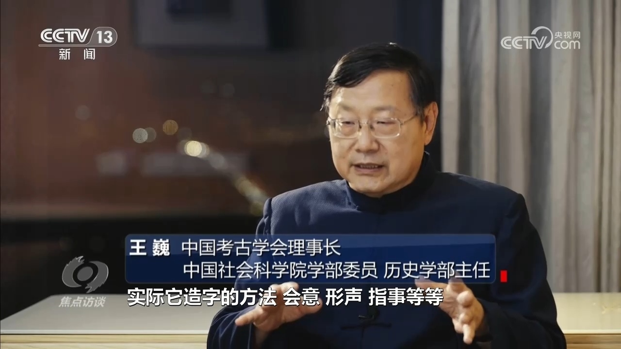 中國考古學(xué)會理事長、中國社會科學(xué)院學(xué)部委員、歷史學(xué)部主任王?。骸八胸S富的記載功能,商代的甲骨文是非常成熟的文字體系,它的造字方法、會意、形聲、指事等,它的造字方法已經(jīng)非常成熟了。正是因為有漢字,我們可以知道各個時代的政治、經(jīng)濟、文化、社會的記錄。”