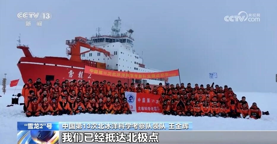 五分鐘后,“雪龍2”號順利抵達北極點。