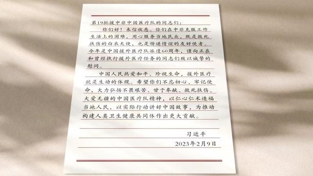 時隔10年,2023年2月,習(xí)近平主席在給第19批援中非共和國中國醫(yī)療隊隊員回信時,再次提到中國醫(yī)療隊精神。