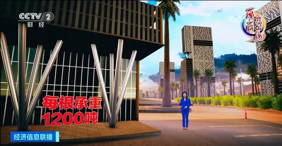 包括標志塔在內,中國企業(yè)在中央商務區(qū)共承接了20個高層建筑單體及配套市政工程。20棟高樓間,我們還能看見不少這樣的“樹形柱”,四根向上斜伸的柱子,像一個倒立的金字塔。我身邊就是這種樹形柱,每根柱子承受1200噸重量,相當于在上面站立150頭成年大象,受力卻只集中于底部一點,中國團隊歷經(jīng)3個多月的精密計算與人工調試,讓這個專屬于埃及的設計成功澆筑,用堅實的技術托起了這座未來之城。