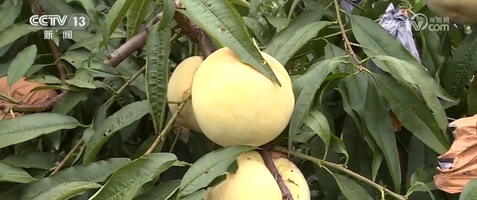 走進江蘇泗陽農(nóng)源果樹種植家庭農(nóng)場,空氣中彌漫著桃子甜甜的香味。綠葉掩映下,一個個秋桃碩大沉實,綴滿枝頭。2023年,這里種植的是新品種“映霜紅”,品質(zhì)好、個頭大,口感甜。