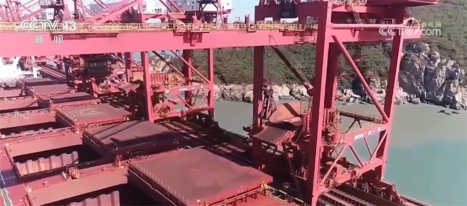 記者來到寧波舟山港鼠浪湖礦石中轉(zhuǎn)碼頭時,一個個抓斗正忙著從巨輪上接卸礦石。今年以來,40萬噸礦船是這里的??汀W鳛榇笞谖镔Y集散地,寧波舟山港承擔了長江經(jīng)濟帶45%的鐵礦石、90%以上的油品中轉(zhuǎn)量。前三季度,寧波舟山港經(jīng)營體系內(nèi)鐵礦石的接卸量超過了1億噸。