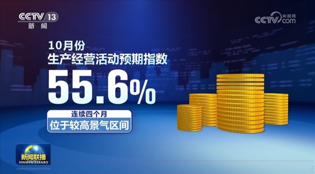 另外,10月份生產(chǎn)經(jīng)營活動預(yù)期指數(shù)為55.6%,連續(xù)四個月位于較高景氣區(qū)間,制造業(yè)企業(yè)對市場發(fā)展信心穩(wěn)定。