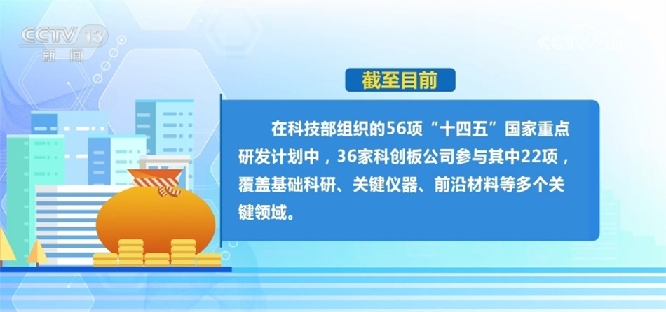 ?????? 截至目前,在科技部組織的56項(xiàng)“十四五”國家重點(diǎn)研發(fā)計(jì)劃中,36家科創(chuàng)板公司參與了其中22項(xiàng),覆蓋了基礎(chǔ)科研、關(guān)鍵儀器、前沿材料等多個關(guān)鍵領(lǐng)域。