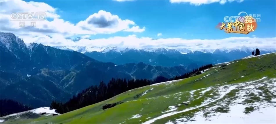 現(xiàn)在我們來到新疆昌吉木壘縣南部山區(qū),這兩天的降雪為秋日里的天山增添了別樣的色彩。群山巍峨聳立,松林蒼翠欲滴,冰峰雪嶺在氤氳云霧中若隱若現(xiàn)。雪的瑞白遇到山間的翠綠,也難掩這里的一派生機(jī),素雅恢宏中盡顯高山牧場的唯美壯麗。